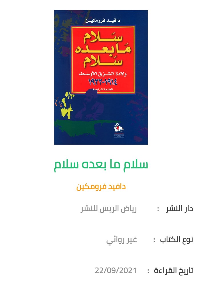 رأيي في الكتاب؟ كتاب لابد من قراءته (must read) لمن يريد أن يفهم المنطقة وتاريخ المنطقة. الكثير من الأدبيات التي كانت تندد بأحداث معينة من التاريخ أو تمجد بأحداث أخرى، ستنظر إليها بمنظور مختلف. الطريقة التي كانت تدار بها الاتفاقيات لم تكن شراً خالصاً ولم تكن تحت ما يسمى بالمؤامرة على الإسلام أو غيرها من الشعارات، كانت مصالح الدول هي المحرك الأساسي لما يحدث، تماماً كما هو الحال في وقتنا الحاضر. والدليل على ذلك أنه حتى أثناء الحرب تغيرت التحالفات وفقاً لتغير المصالح، فرفيق الأمس أصبح عدو اليوم.